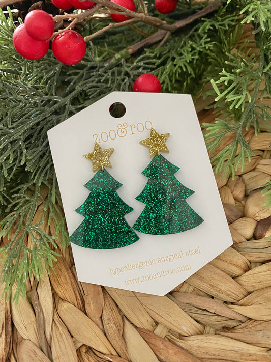 Green Glitter Tree Dangles