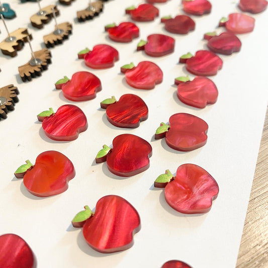 Small and simple handmade stud earrings laser cut from wood and acrylic. Many colors and styles to choose from including engraved and hand painted studs.
