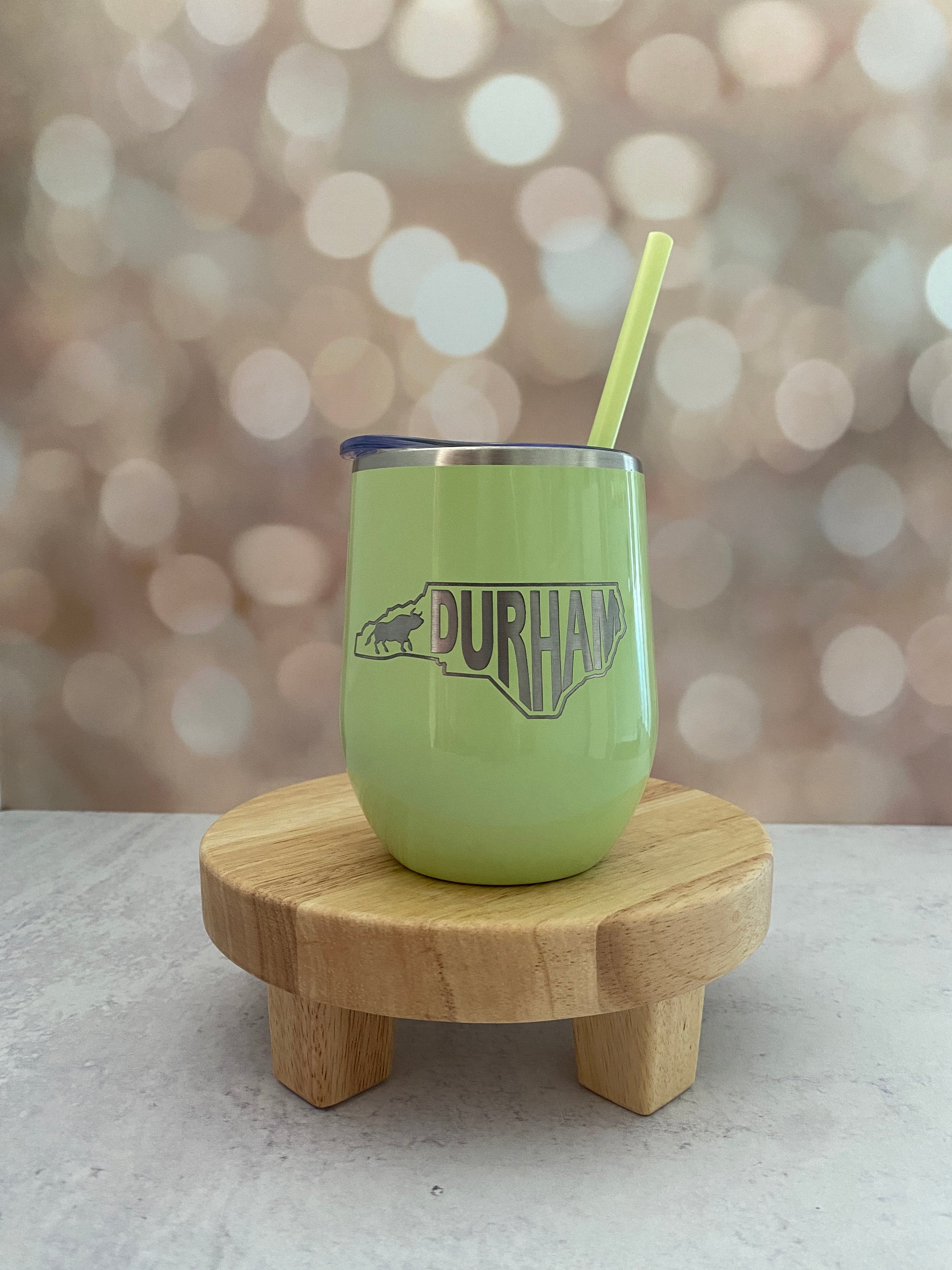 Sip in style with the Durham NC wine tumbler! Made of durable stainless steel, this 12 oz tumbler is perfect for keeping your favorite vino chilled. Show off your love for Durham, North Carolina while sipping on your drink of choice. Cheers to that!