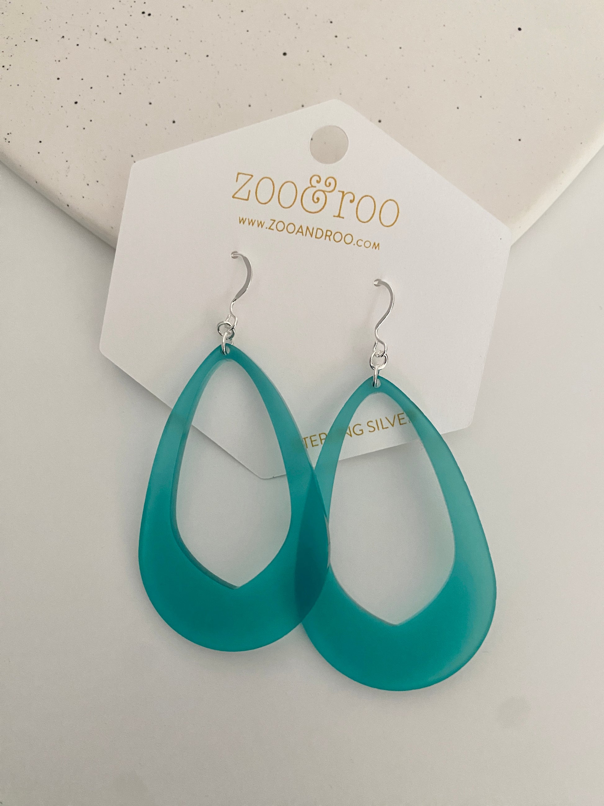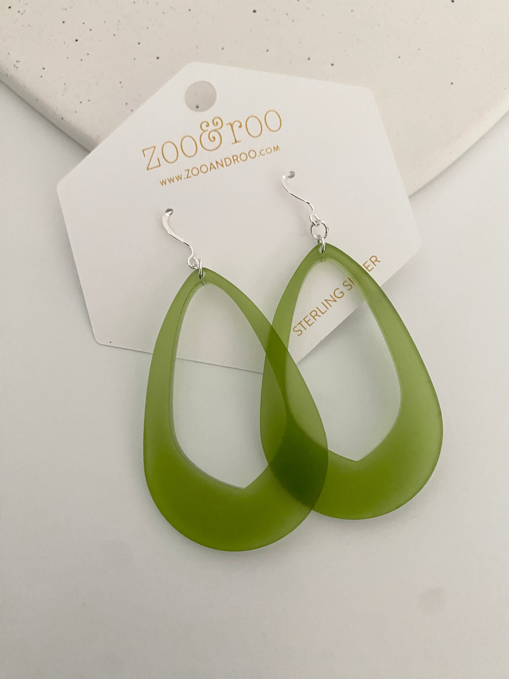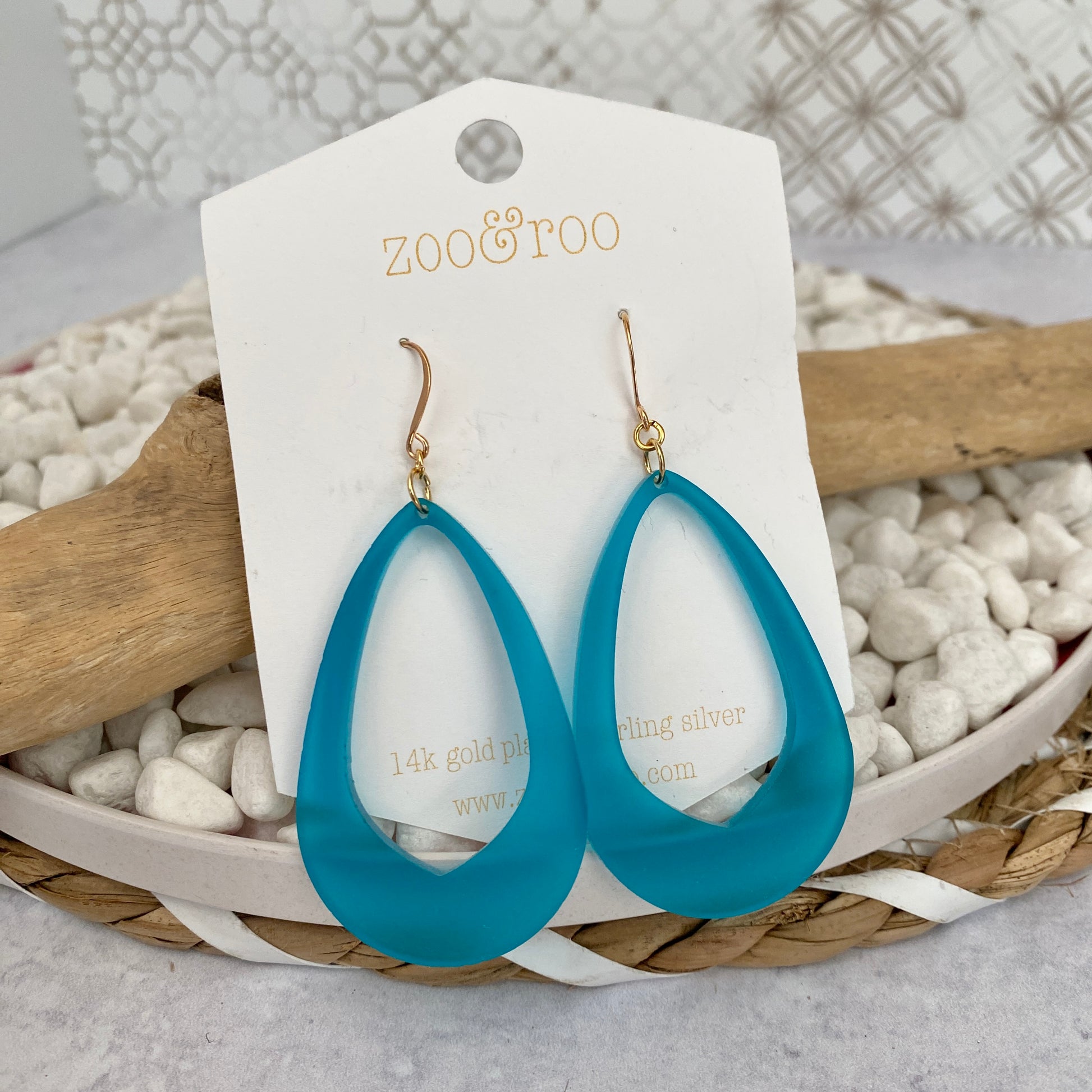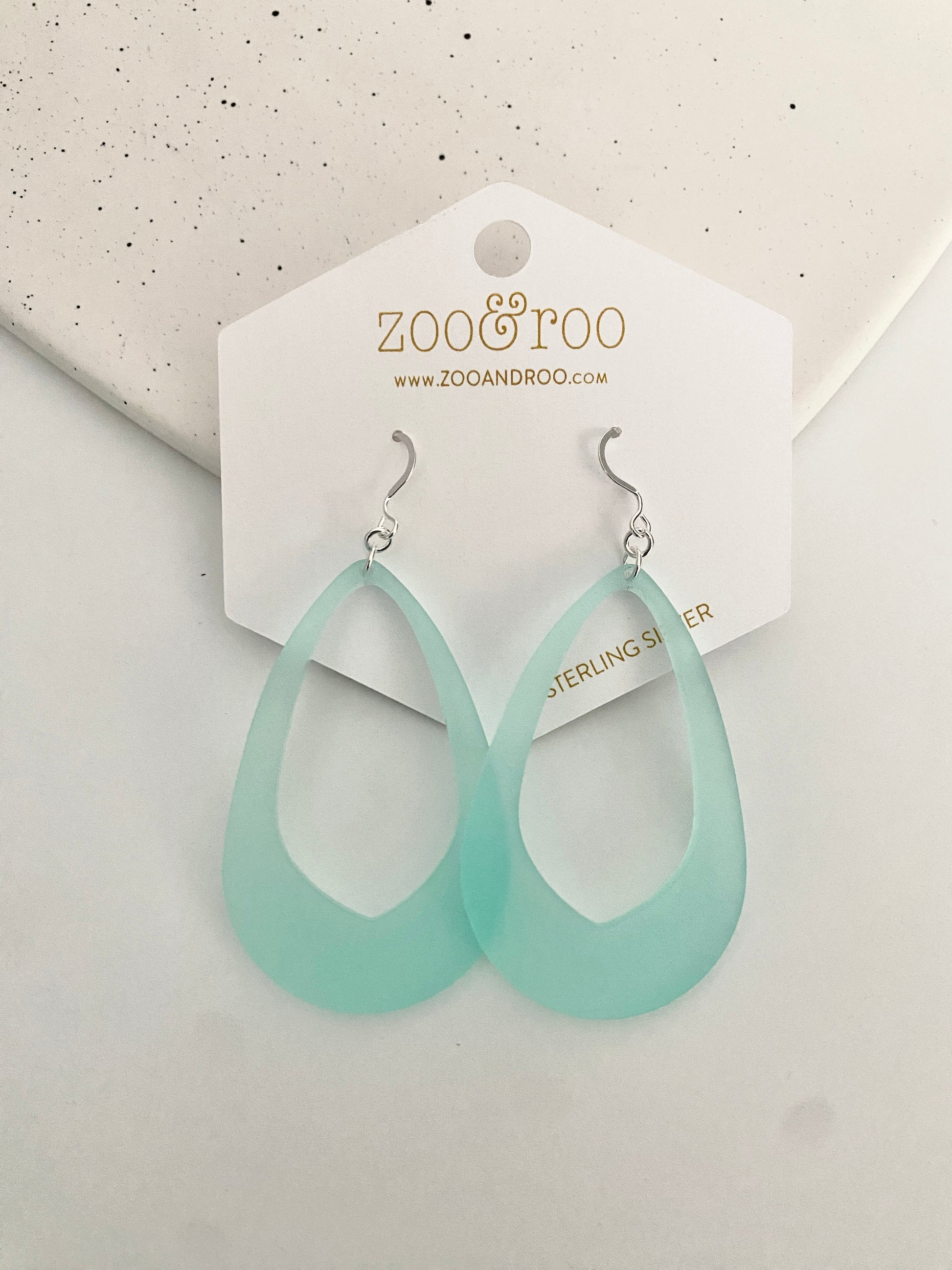 Add a touch of whimsy with the classic Olivia earrings. Featuring an open teardrop design made of frosted acrylic that resembles sea glass, these earrings are a unique addition to any jewelry collection. Perfect for adding a fun and stylish accent to any outfit.