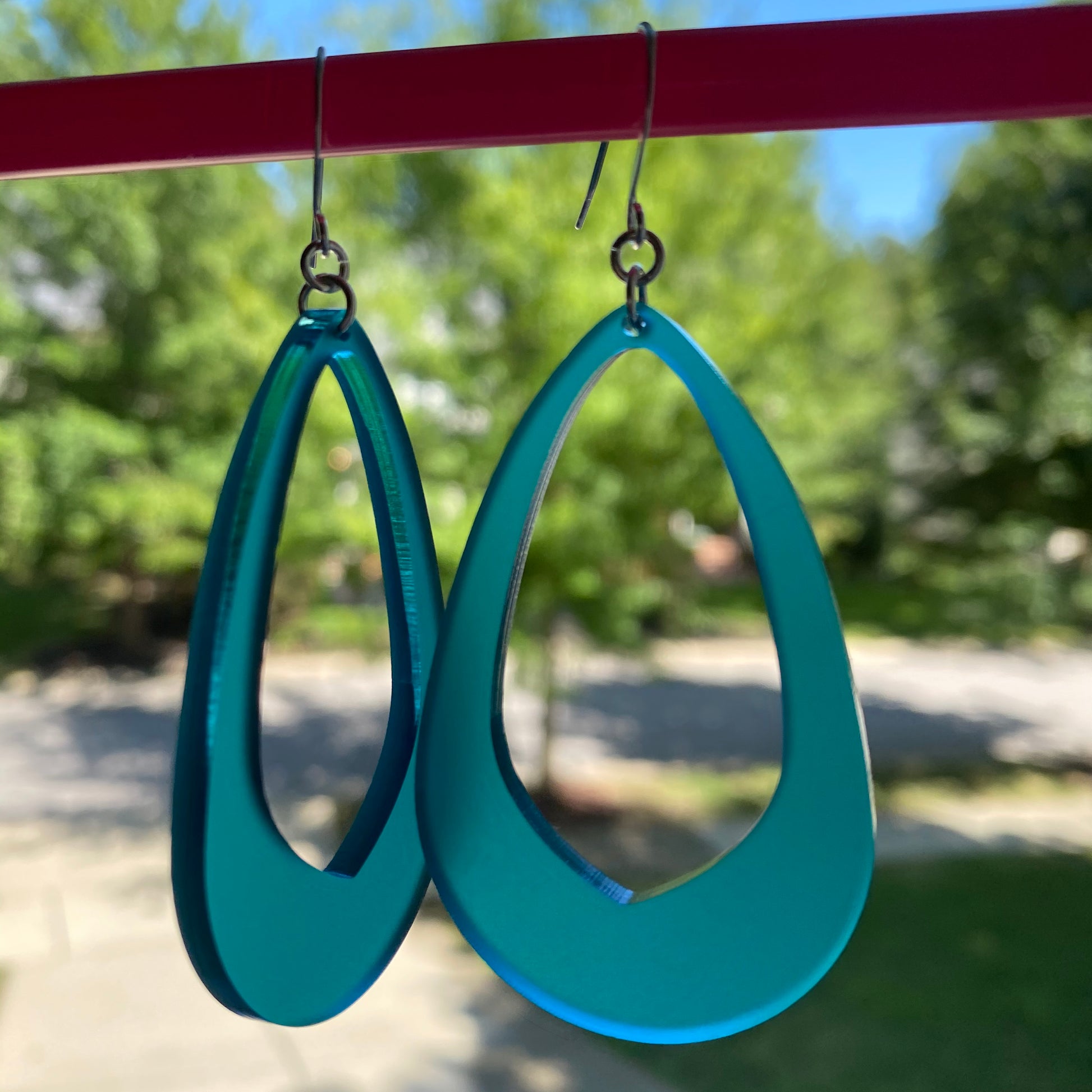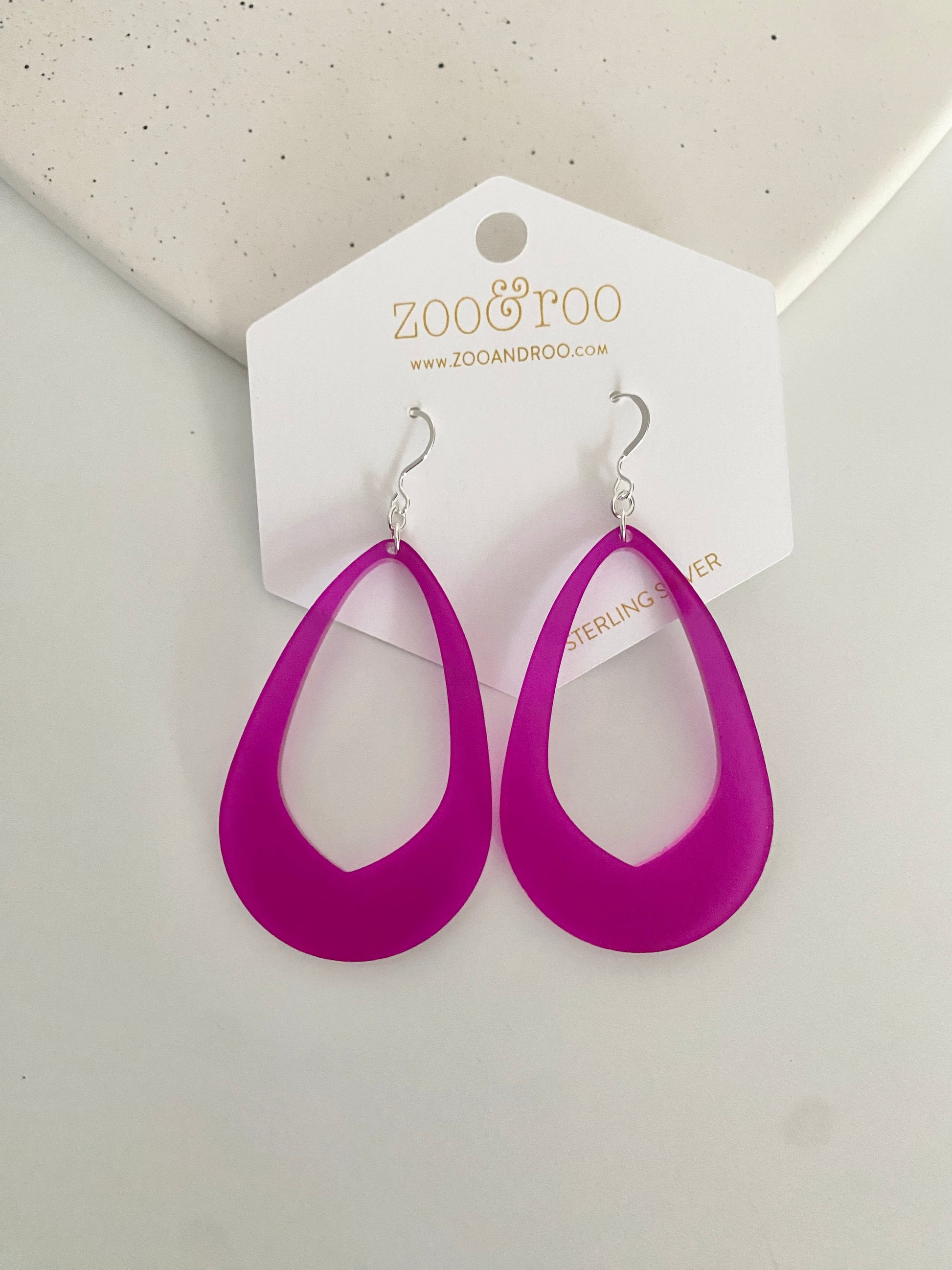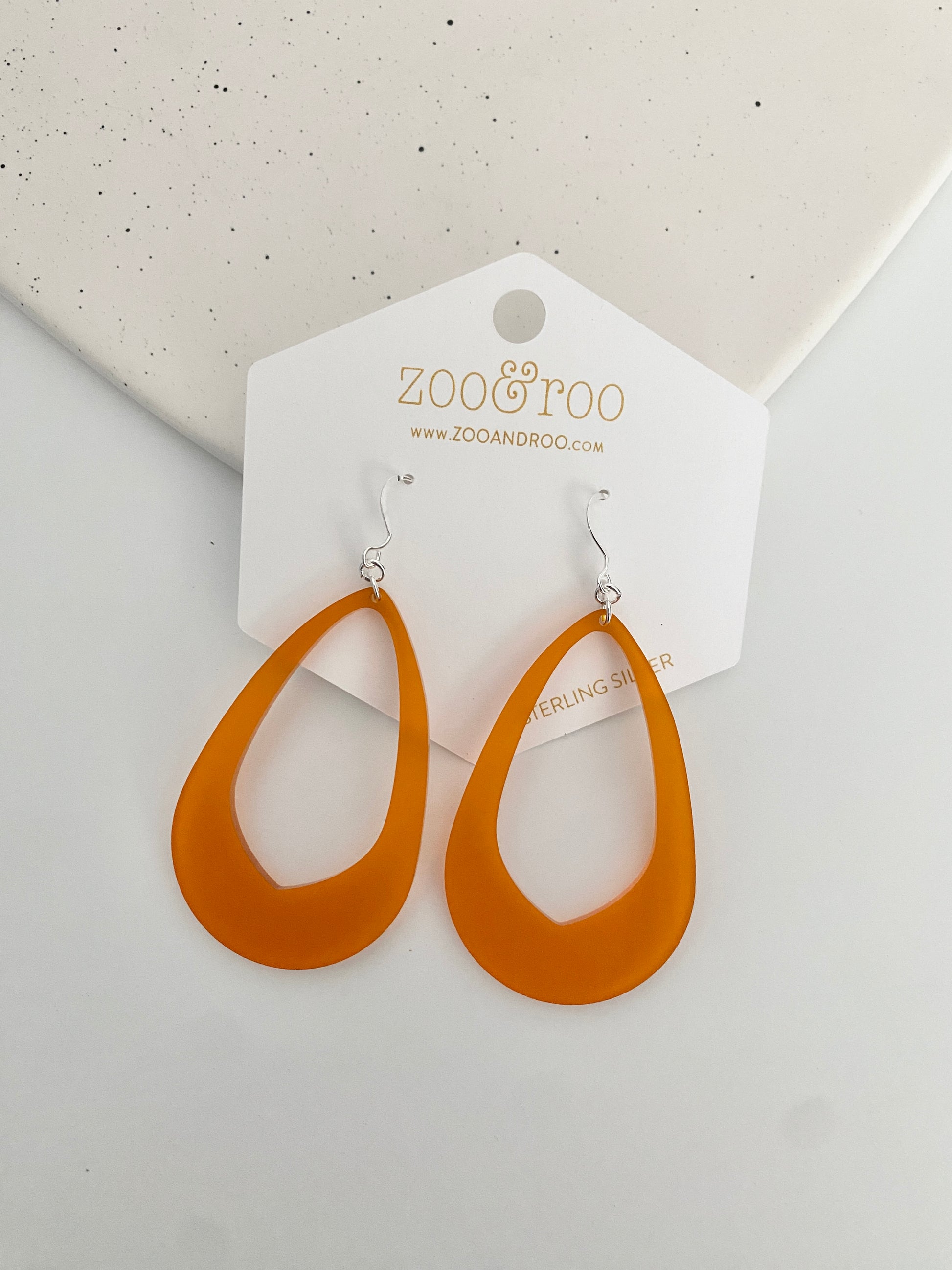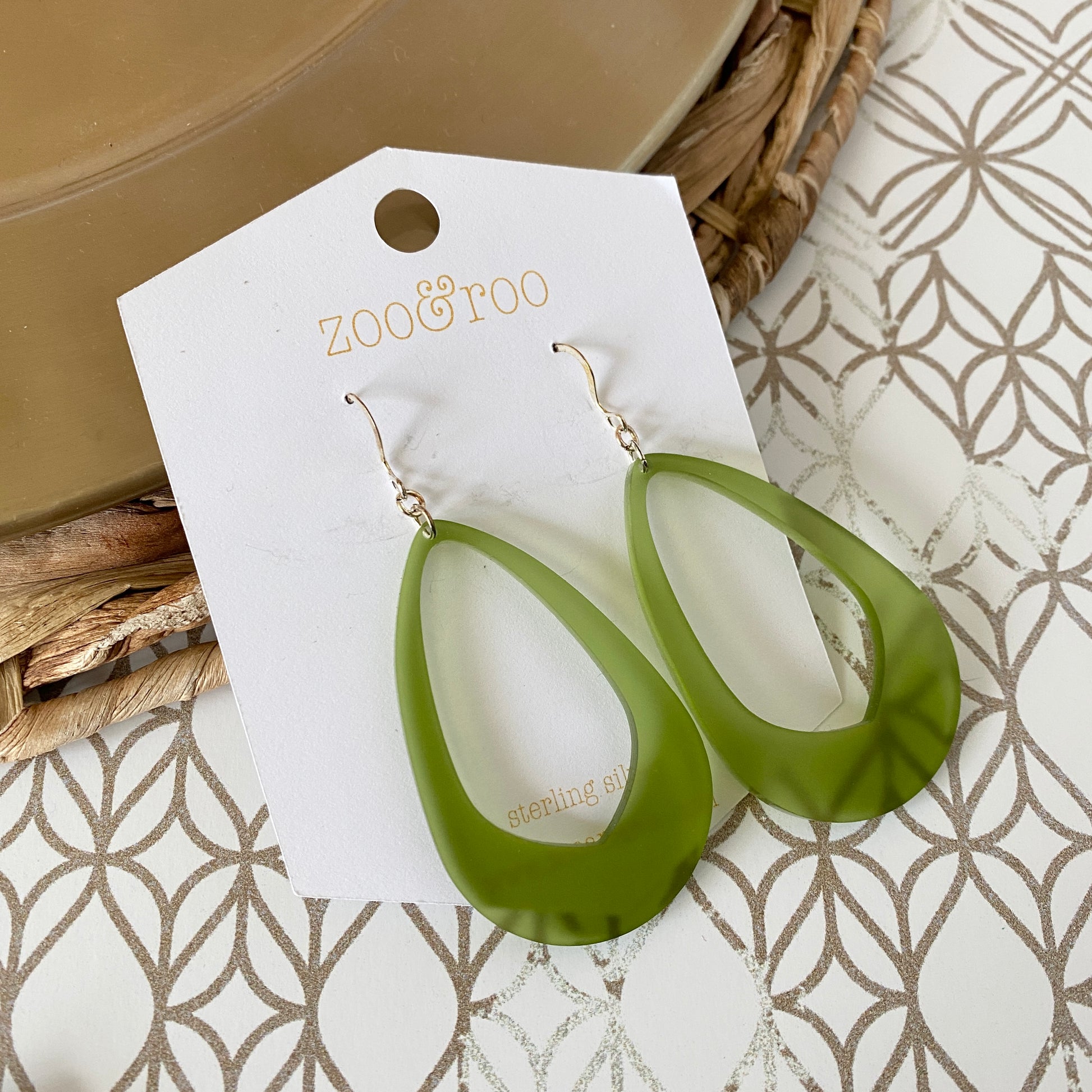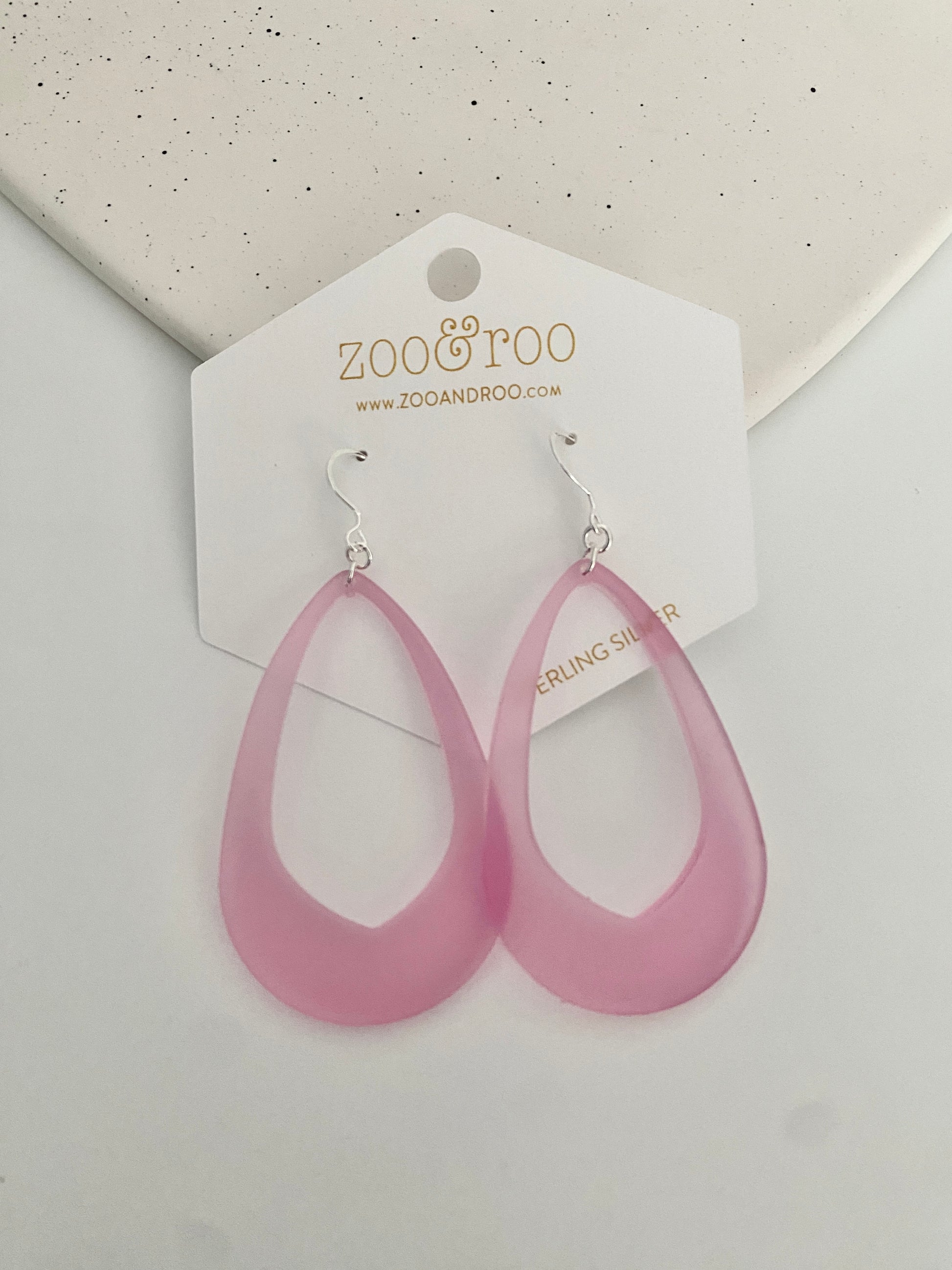 Add a touch of whimsy with the classic Olivia earrings. Featuring an open teardrop design made of frosted acrylic that resembles sea glass, these earrings are a unique addition to any jewelry collection. Perfect for adding a fun and stylish accent to any outfit.