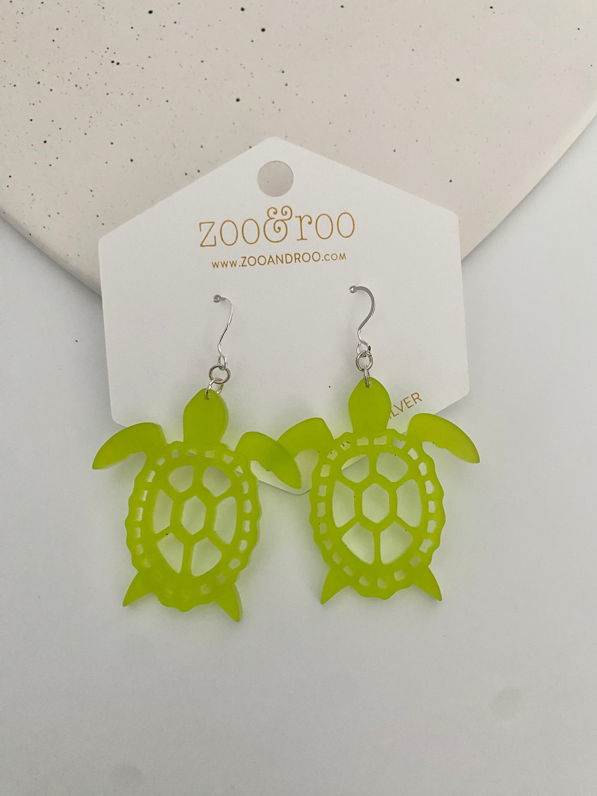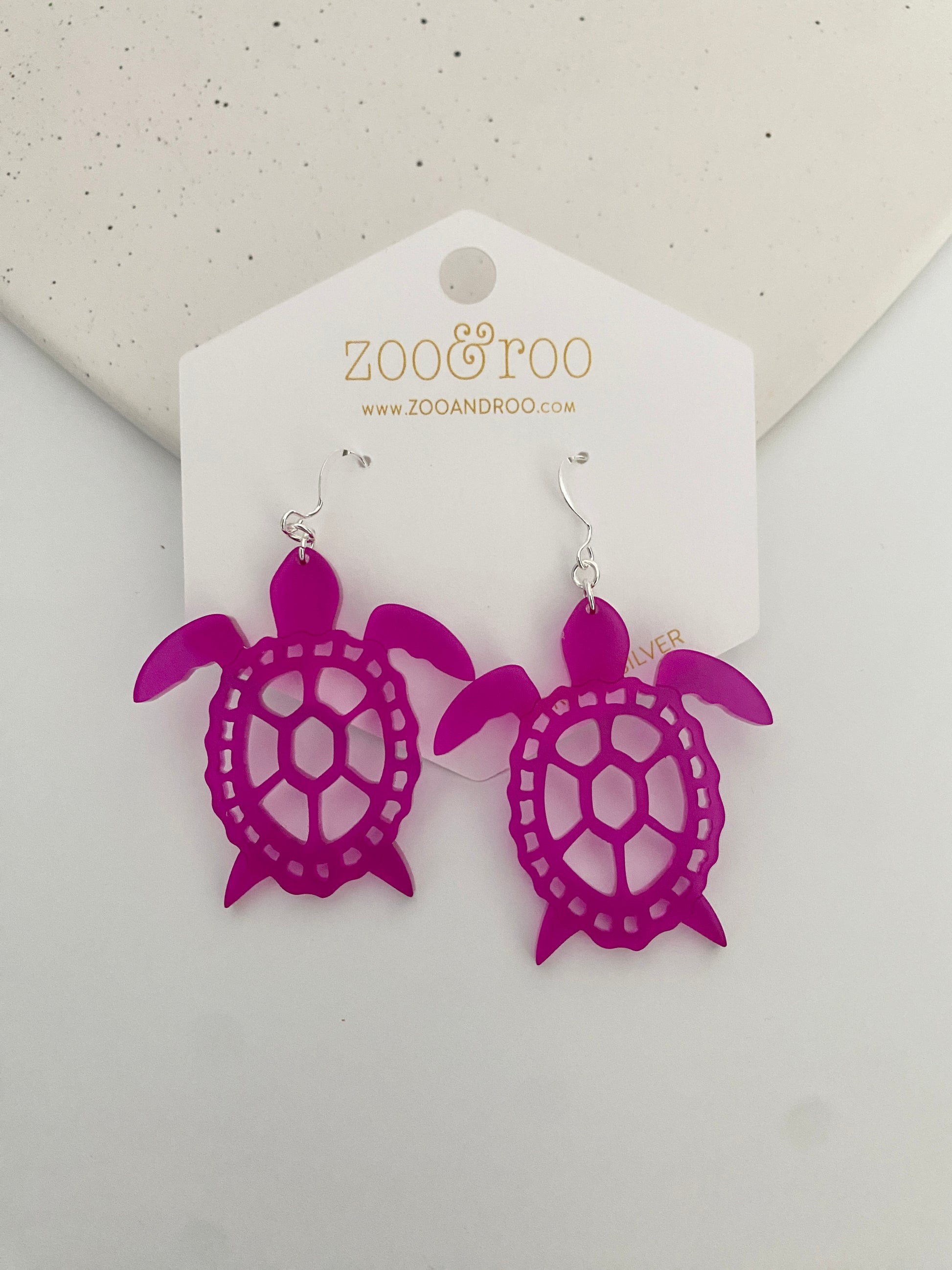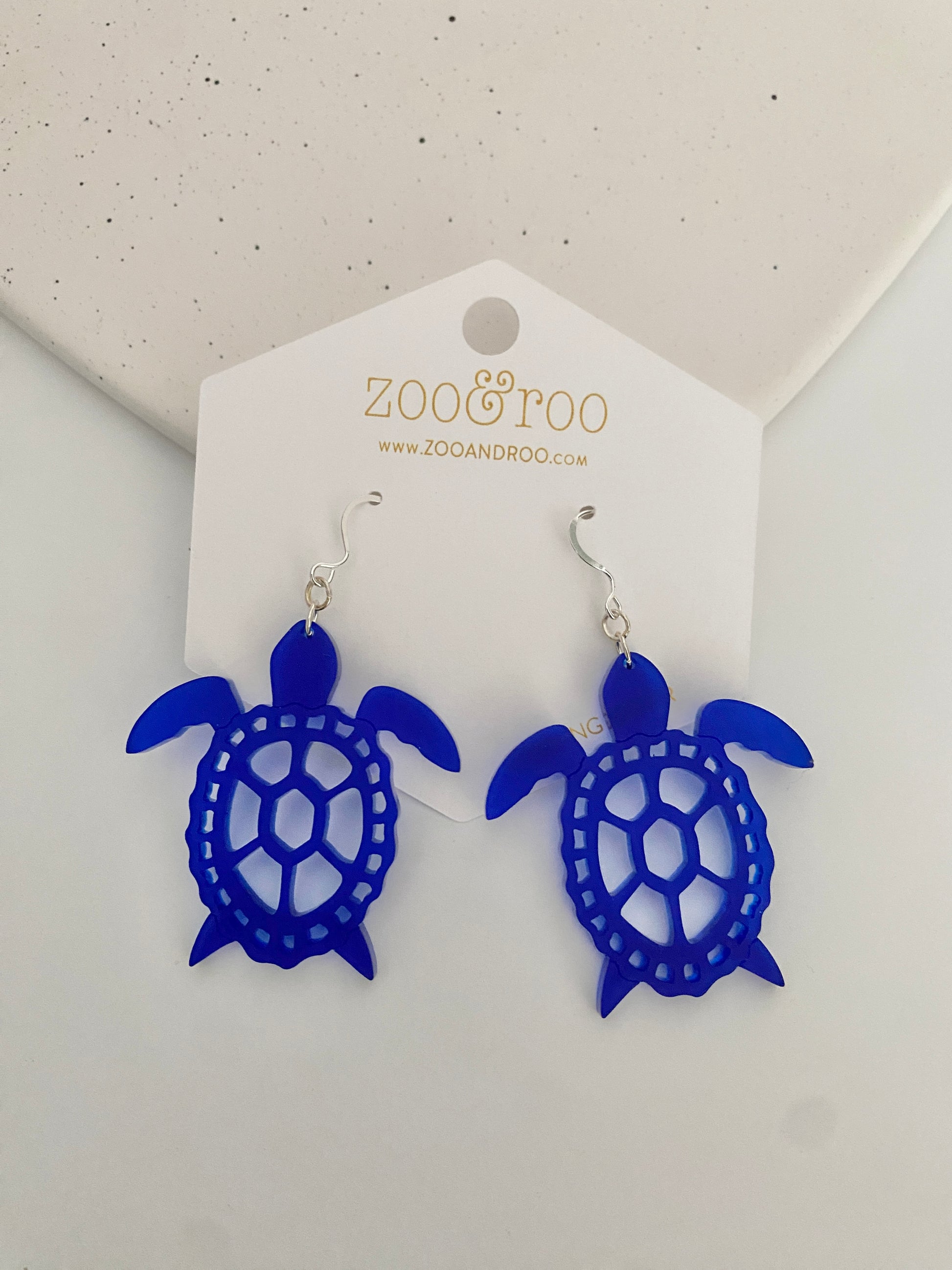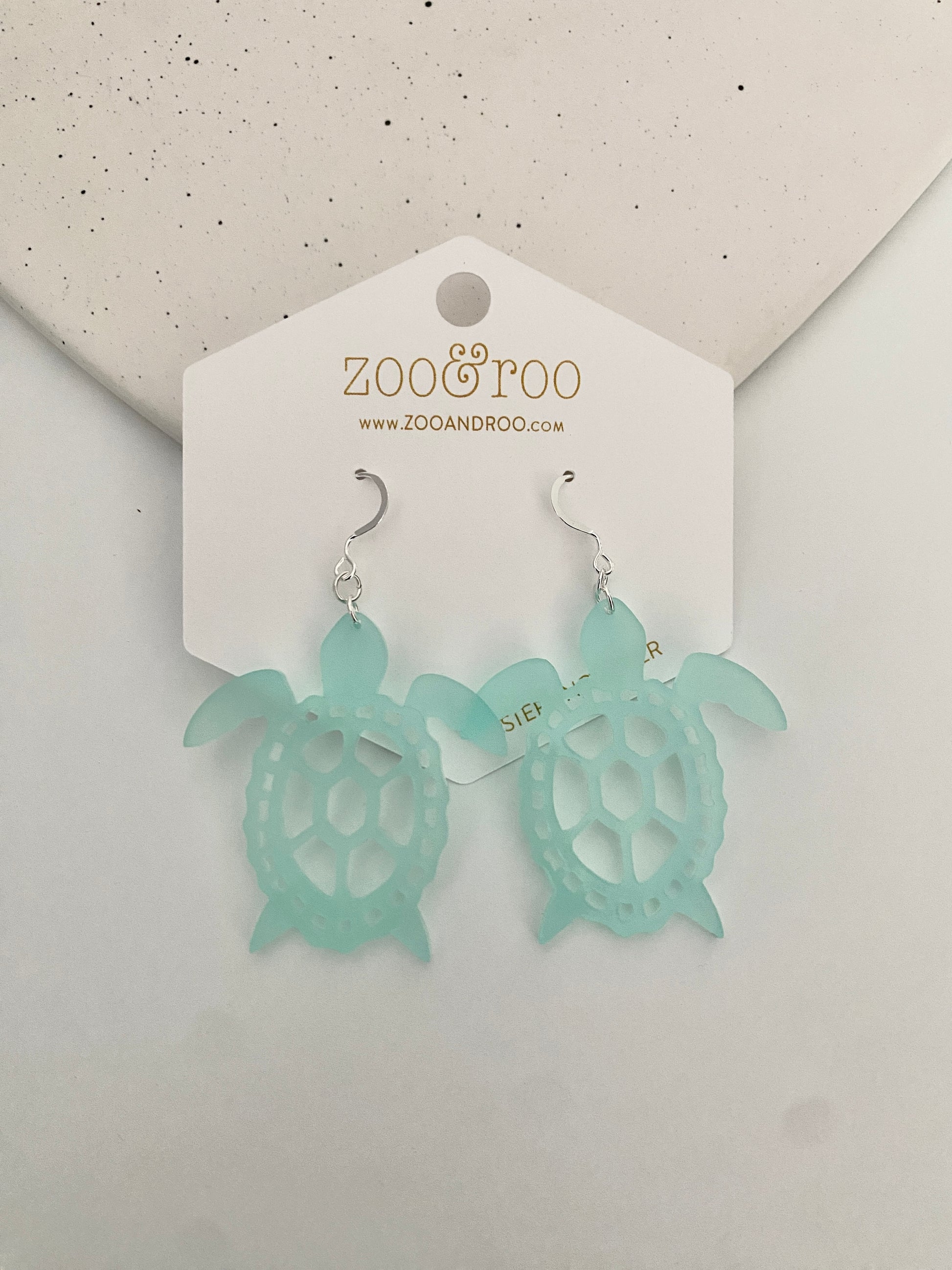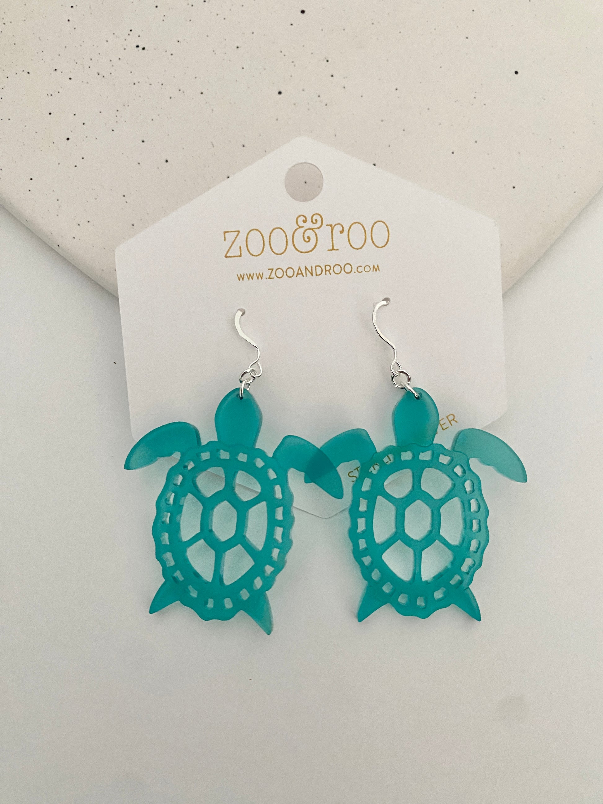 These turtle earrings cut from frosted acrylic look like sea glass! The acrylic is slightly transparent and provide a fun pop of color. They are a unique addition to any jewelry collection and are perfect for all beach (and turtle) lovers.