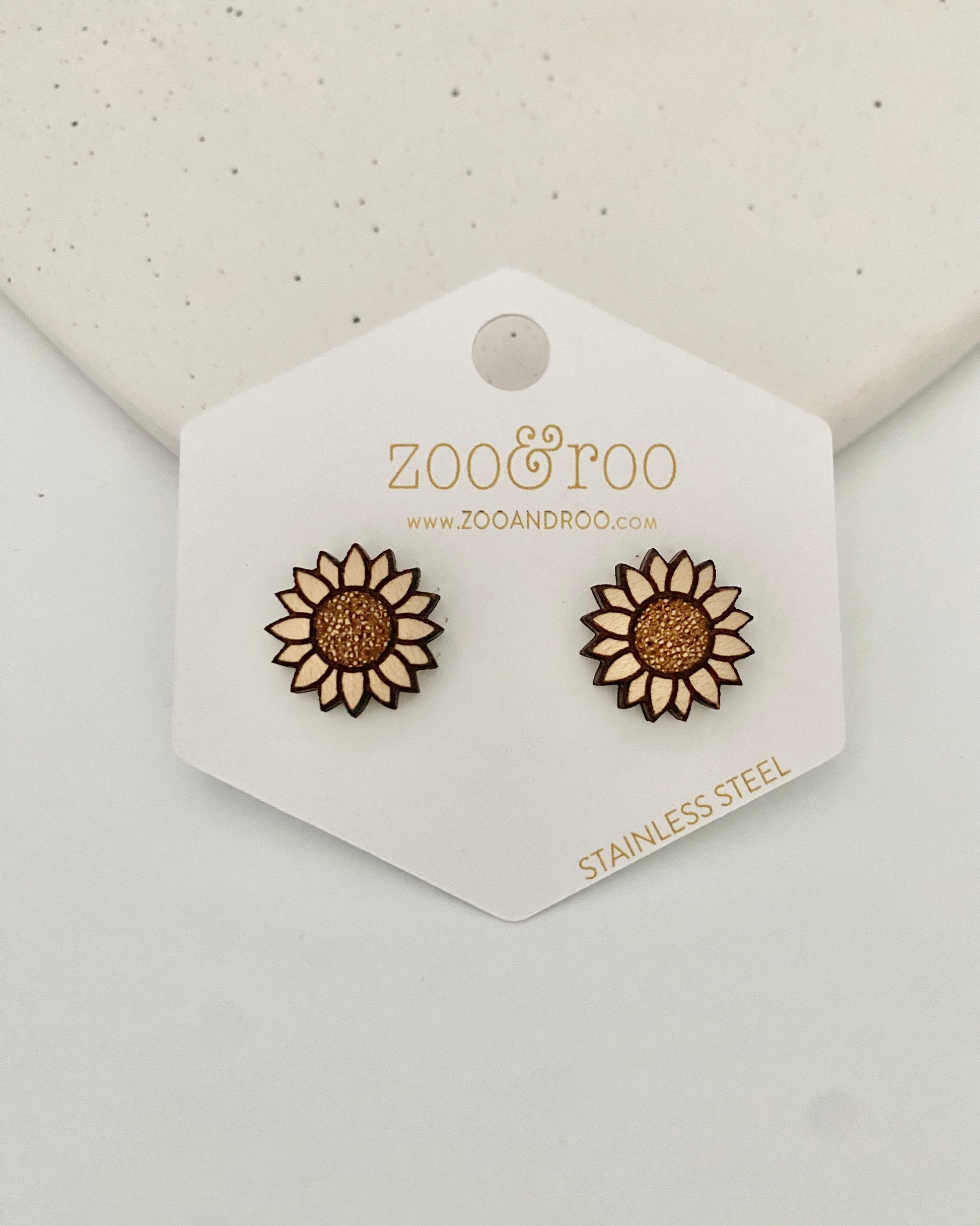 Add a little sunshine to your daily look with our Sunflower studs! These adorable wood earrings feature an engraved sunflower design. Perfect for nature lovers (and flower power)! 🌻