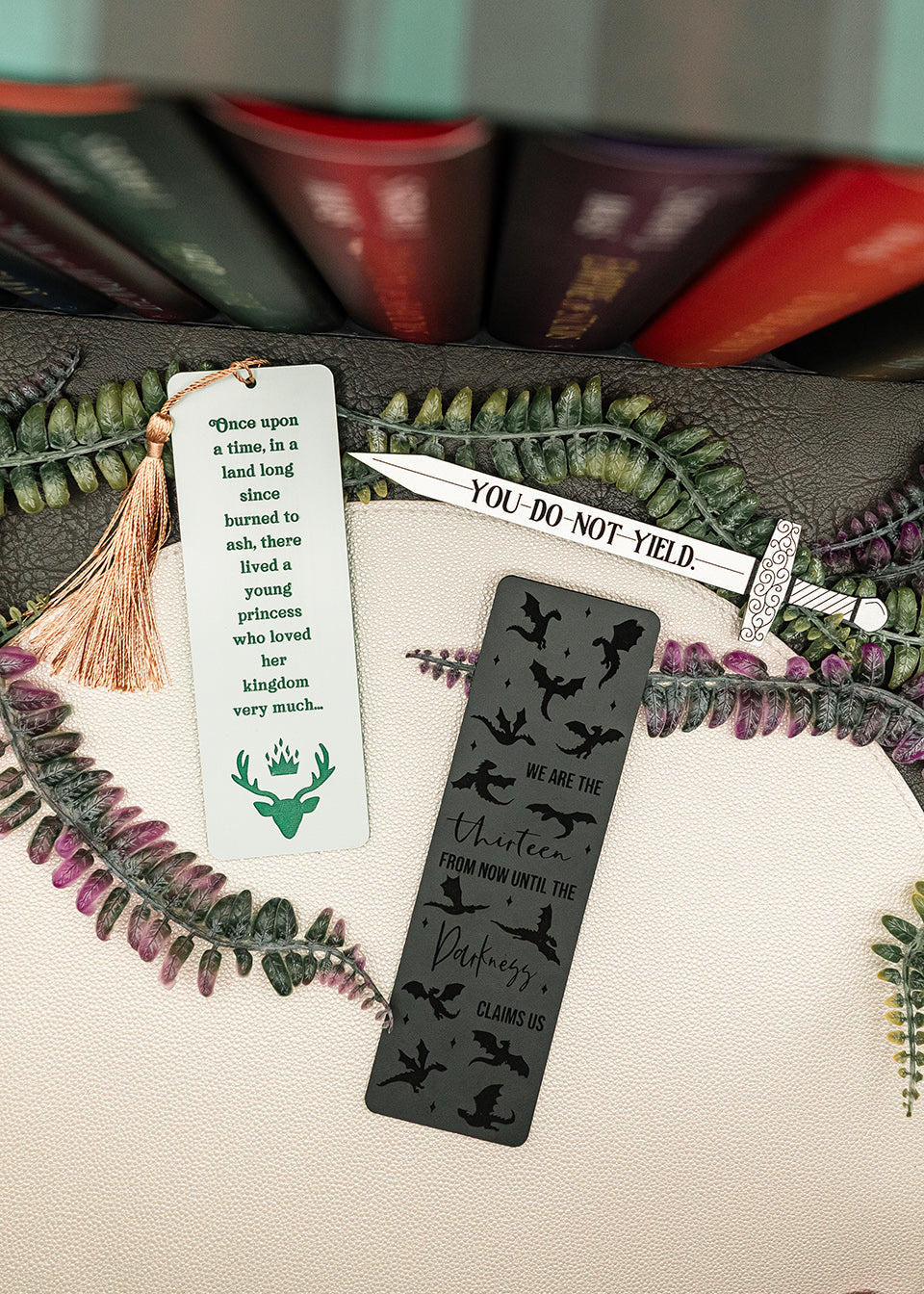 This Thirteen bookmark honors the fierce and brave Ironteeth witches of Throne of Glass. Engraved with 13 wyvern, 13 stars, and the iconic quote, it’s a tribute to loyalty, sacrifice, and unbreakable bonds.